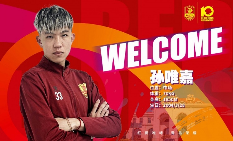 孙唯嘉同样出自青岛海牛青训体系,2023-2024赛季租借加盟青岛红狮期间,出场40次,打进7球,助攻3次。